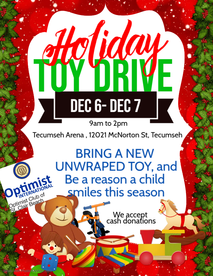 This holiday season, we , The Optimist Club of St Clair Beach, invite you to make a meaningful difference by contributing to our Optimist Toy Drive in support of Family Respite Services. For many families with children who have special needs, the holiday season can be both joyful and challenging. While the holidays are meant to be a time of celebration, the emotional and financial burdens of caregiving can often overshadow the festive spirit. Through this toy drive, we aim to bring joy, relief, and a sense of normalcy to these families.
