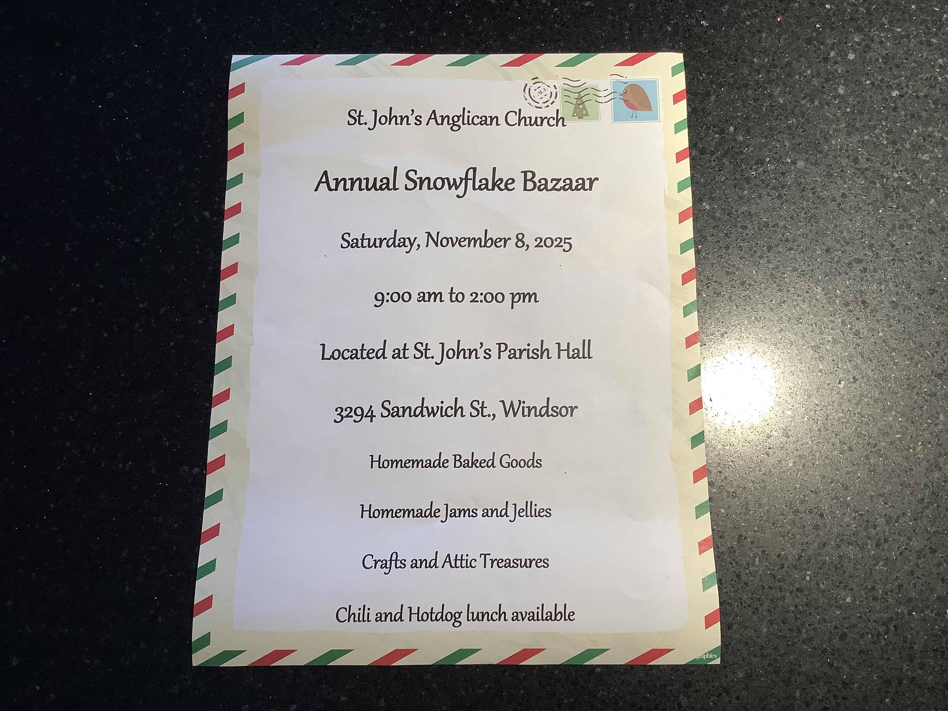 Join us for our annual Christmas bazaar with home baked goodies and jams and jellies. There will be costume jewelry, Christmas decor, crafts and attic treasures where you may find that unique Christmas gift. Drop in for Chili or Brenner’s hot dog lunch. Then stop by at Bedford United Church down the street and check out their bazaar. There is parking on Peter St. by St. John’s Church and the old jail or behind Bedford United Church.